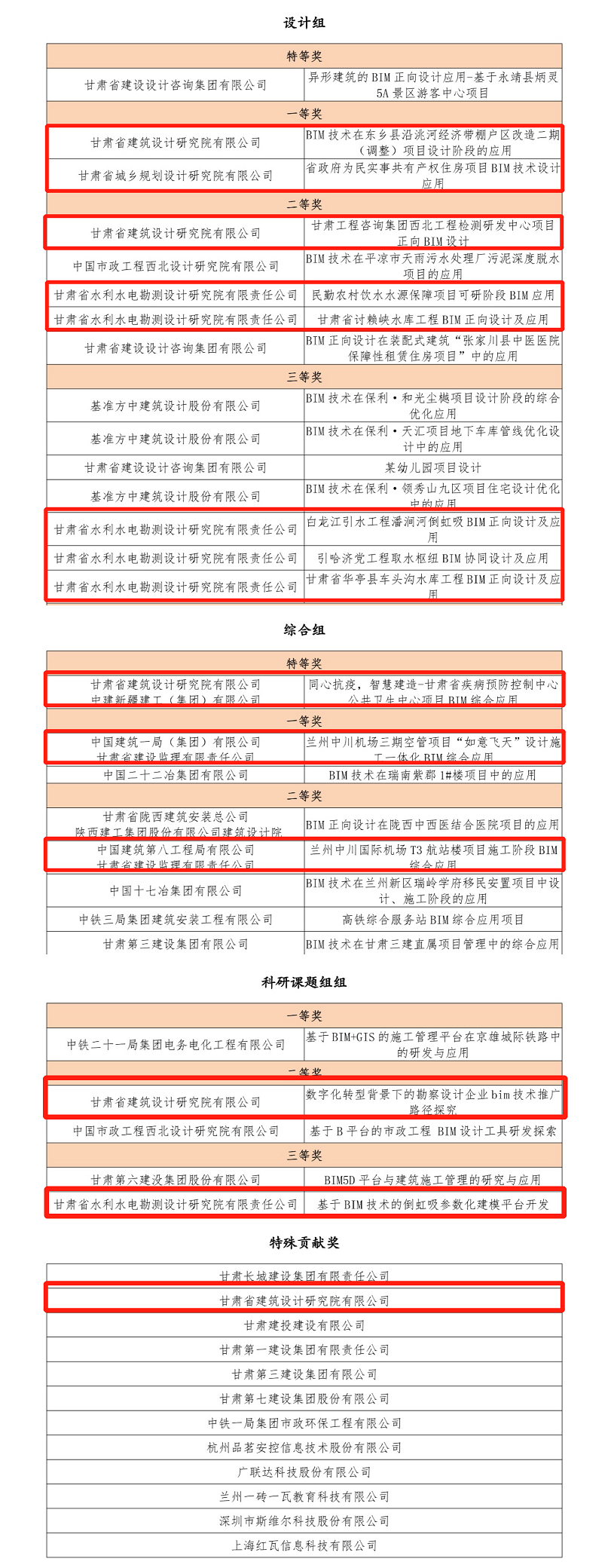 日前,甘肅省第五屆BIM技術(shù)應(yīng)用大賽結(jié)果公布,甘肅工程咨詢集團(tuán)共獲得14個獎項(xiàng),其中,“BIM技術(shù)在東鄉(xiāng)縣沿洮河經(jīng)濟(jì)帶棚戶區(qū)改造二期(調(diào)整)項(xiàng)目設(shè)計(jì)階段的應(yīng)用”等8個項(xiàng)目分別獲設(shè)計(jì)組一、二、三等獎,“同心抗疫,智慧建造—甘肅省疾病預(yù)防控制中心公共衛(wèi)生中心項(xiàng)目BIM綜合應(yīng)用”等3個項(xiàng)目分別獲綜合組特等獎及一、二等獎,“數(shù)字化轉(zhuǎn)型背景下的勘察設(shè)計(jì)企業(yè)BIM技術(shù)推廣路徑探究”等2個項(xiàng)目分別獲科研課題組二、三等獎,建筑設(shè)計(jì)院獲特殊貢獻(xiàn)獎。