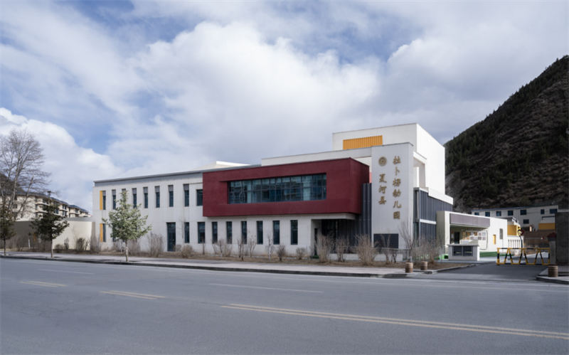 夏河縣門乃合幼兒園坐落于甘南藏族自治州夏河縣核心區(qū)域,南臨大夏河,總建筑面積9710平方米。項目由甘肅省工程勘察設(shè)計大師、甘肅工程咨詢集團總工程師馮志濤領(lǐng)銜,帶領(lǐng)建筑創(chuàng)作中心青年骨干設(shè)計師組成項目團隊,歷時三年精心打造而成。