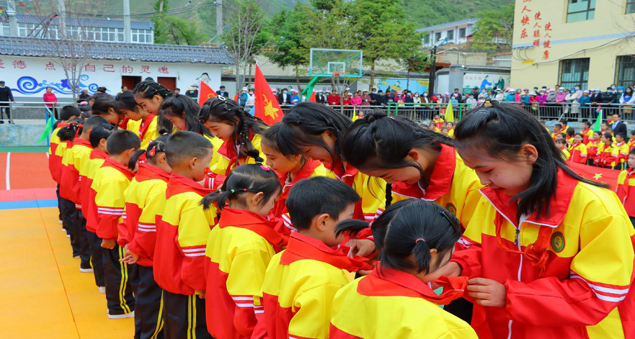 活動現(xiàn)場,在莊嚴激昂的國歌聲中舉行了升國旗儀式。簡單而又隆重的入隊儀式上,鮮紅的隊旗迎風(fēng)飄揚,隨著入隊隊員名單的宣布,許多一年級的同學(xué)成為了光榮的中國少年先鋒隊隊員,并由高年級的少先隊員為他們戴上了鮮艷的紅領(lǐng)巾。隨后,大隊輔導(dǎo)員帶領(lǐng)新隊員宣誓,響亮的呼號聲“時刻準(zhǔn)備著”響徹校園上空,集中展示了新時代少先隊員積極向上的精神風(fēng)貌,全體師生為他們送上最深的祝福。最后,新隊員代表發(fā)言,標(biāo)準(zhǔn)的隊禮、堅定的眼神、稚嫩的聲音表達了最大的決心,號召全體新隊員要在星星火炬的指引下刻苦讀書,從小聽黨話、感黨恩、跟黨走,努力成長為中國特色社會主義事業(yè)建設(shè)者和接班人。