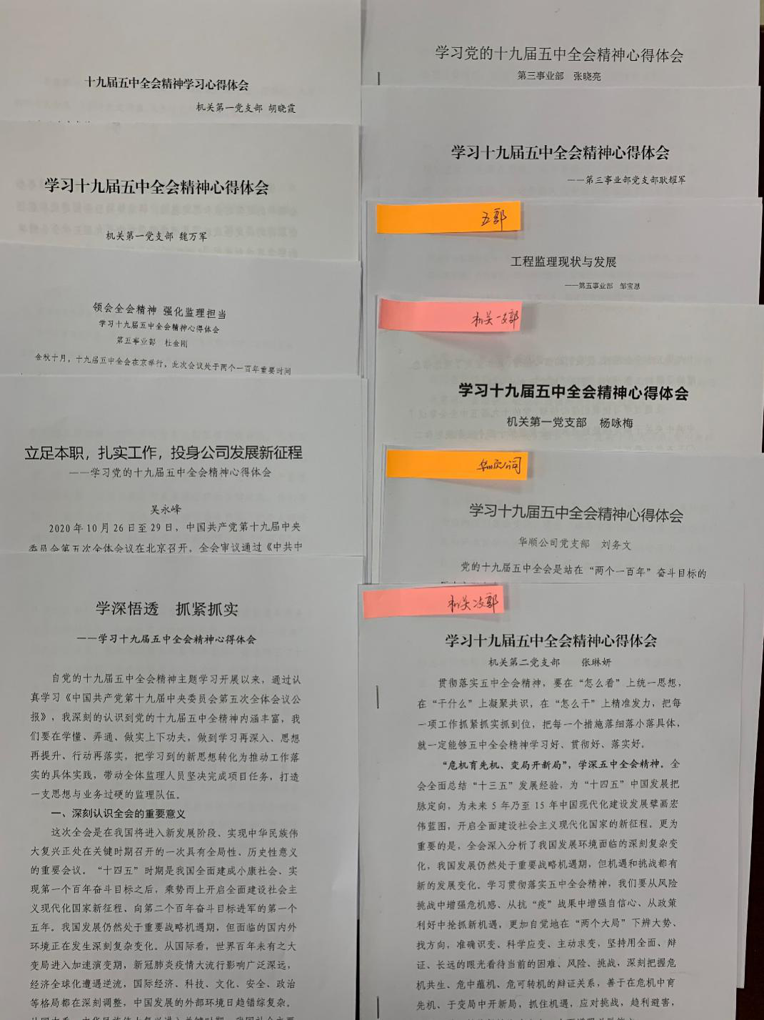 為進一步深入學(xué)習(xí)貫徹落實黨的十九屆五中全會精神,擴大學(xué)習(xí)覆蓋面,擴展學(xué)習(xí)的深度,引導(dǎo)全體黨員干部統(tǒng)一思想、凝聚共識,不斷提振精神狀態(tài)、改進工作作風(fēng)、提升工作效能,公司黨委專門發(fā)文對學(xué)習(xí)貫徹五中全會精神進行了專題安排,要求全體黨員在黨委理論學(xué)習(xí)中心組學(xué)、支部學(xué)、部門學(xué)、個人自學(xué)的基礎(chǔ)上,自覺撰寫學(xué)習(xí)心得體會,共收集心得體會84篇。從收到的心得體會來看,全體黨員在學(xué)習(xí)貫徹黨的十九大五中全會精神過程中動腦、入心,做到了做到學(xué)有所思、學(xué)有所慮、學(xué)有所得、學(xué)有所做。