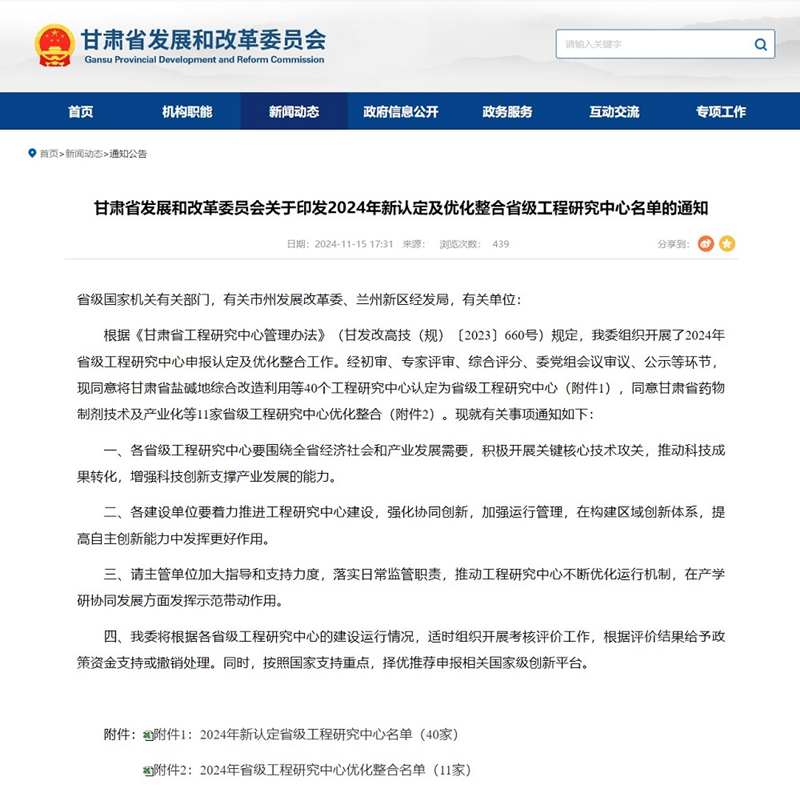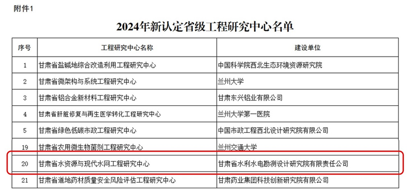近日,省發(fā)展和改革委員會(huì)公布《2024年新認(rèn)定及優(yōu)化整合省級工程研究中心名單》,省水電設(shè)計(jì)院申報(bào)的“甘肅省水資源與現(xiàn)代水網(wǎng)”成功獲批立項(xiàng)“省級工程研究中心”,標(biāo)志著公司在水利工程科研平臺建設(shè)方面取得了重大突破。