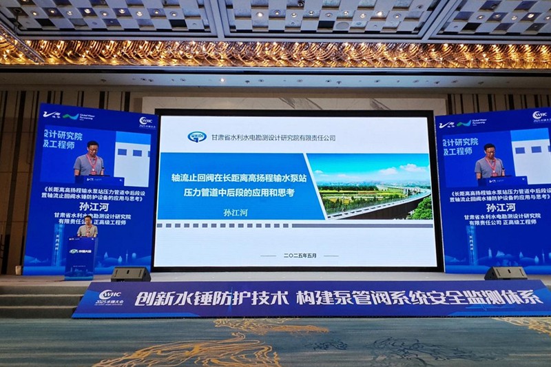 省水電設(shè)計(jì)院相關(guān)專家團(tuán)隊(duì)?wèi)?yīng)邀參會并發(fā)表主旨演講,介紹了公司在長距離高揚(yáng)程泵站工程中的創(chuàng)新防護(hù)技術(shù)成果。同時(shí),針對“管道負(fù)壓控制標(biāo)準(zhǔn)”“水錘在線監(jiān)測系統(tǒng)建設(shè)”等行業(yè)痛點(diǎn)問題,提出前瞻性思考與展望,引發(fā)與會專家熱烈討論與高度關(guān)注。