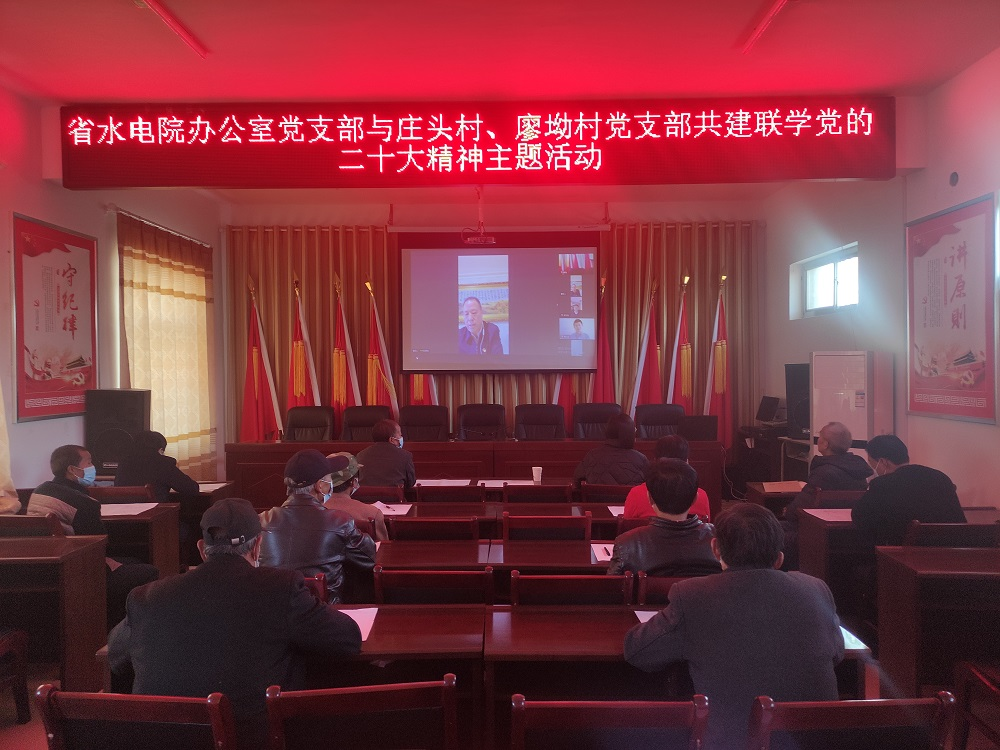 會議以視頻形式召開,兩個幫扶村在線下設分會場,村黨支部成員在分會場參加。會上,水電設計院辦公室黨支部書記陳紅寶對黨的二十大精神進行了輔導宣講,辦公室黨支部、幫扶工作聯系人、駐村干部和兩個村黨支部書記、村民黨員代表等9人作了交流發(fā)言。