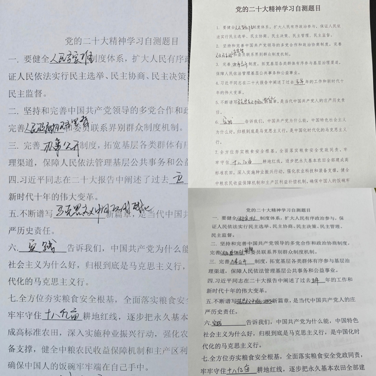 開展答卷測試,檢驗學(xué)習(xí)成效。招標咨詢集團第三黨支部所屬咨詢中心采取線上視頻會議的方式組織全體黨員居家學(xué)習(xí)黨的二十大報告原文,通過學(xué)原文、悟原理、反復(fù)學(xué)、時常悟,深刻領(lǐng)會和準確把握報告的精神實質(zhì)、豐富內(nèi)涵和核心要義。同時,對黨的二十大報告相關(guān)知識開展應(yīng)知應(yīng)會測試,通過答卷的方式檢驗黨員干部對黨的二十大精神的理解和把握,達到以考促學(xué)、以學(xué)促用、學(xué)用結(jié)合、知行合一的目的。