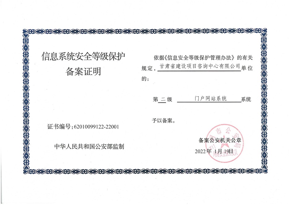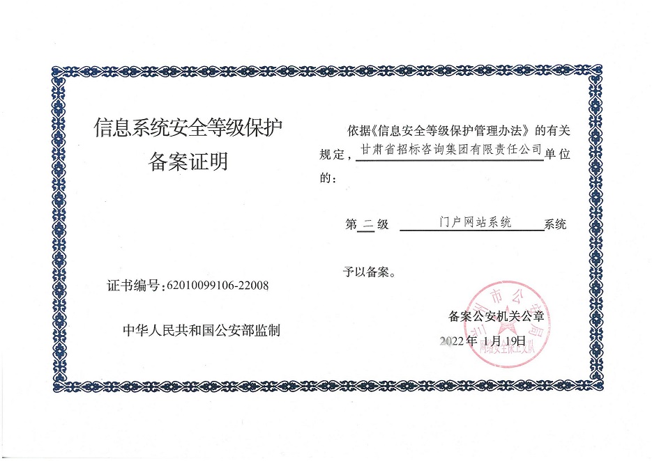 自工作開展以來,相關(guān)子公司積極貫徹落實集團公司工作舉措,集團本部、建筑設(shè)計院、水電設(shè)計院、土木工程院、招標咨詢集團、交通監(jiān)理公司合計16個信息系統(tǒng)已順利完成信息系統(tǒng)安全等級保護2.0測評備案工作,并獲得監(jiān)管部門頒發(fā)的《信息系統(tǒng)安全等級保護備案證明》。通過此次等級保護2.0測評工作,集團公司網(wǎng)絡(luò)和重要的信息數(shù)據(jù)系統(tǒng)的安全防護和保障能力得到進一步提升,為推動集團公司數(shù)字化轉(zhuǎn)型工作打下堅實的基礎(chǔ)。