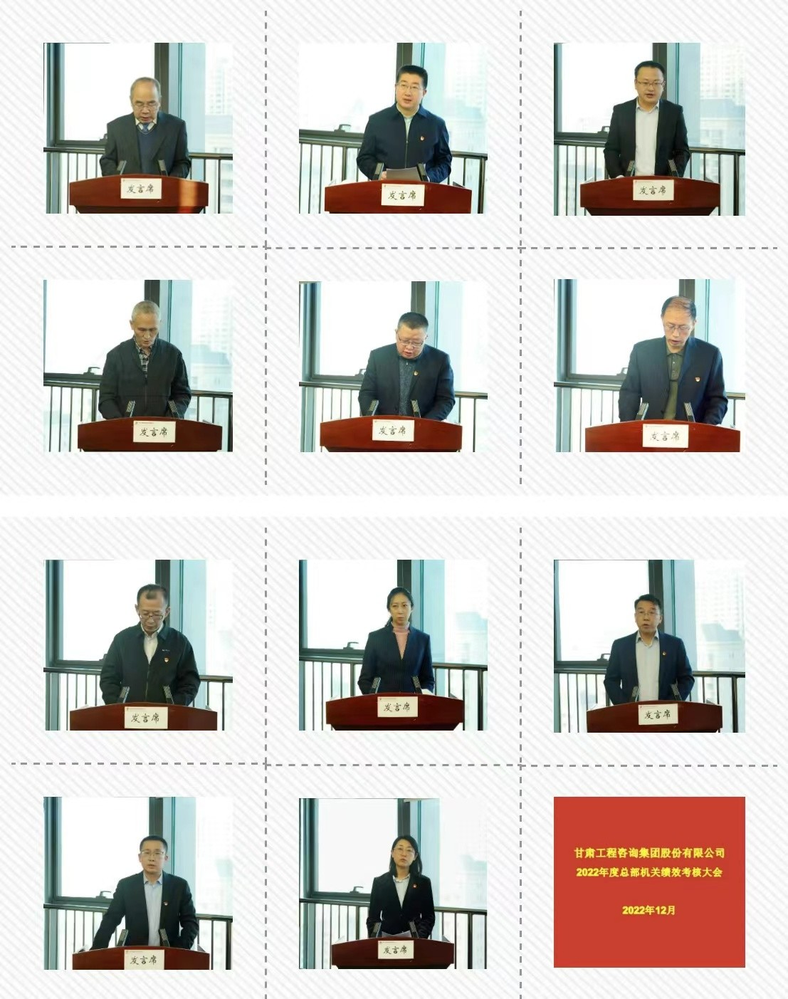 12月27日,甘肅工程咨詢集團(tuán)召開2022年度總部機(jī)關(guān)績(jī)效考核大會(huì),按照新修訂的《機(jī)關(guān)績(jī)效考核管理辦法(試行)》,對(duì)各職能部門績(jī)效、職能部門正副職崗位績(jī)效進(jìn)行考核,同時(shí)對(duì)職能部門正副職進(jìn)行年度政治素質(zhì)考察專項(xiàng)測(cè)評(píng)。黨委書記、董事長(zhǎng)馬明主持并講話。