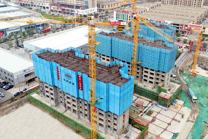 蔚藍天空下,腳手架錯落有致,訴說著奮進與夢想的故事。