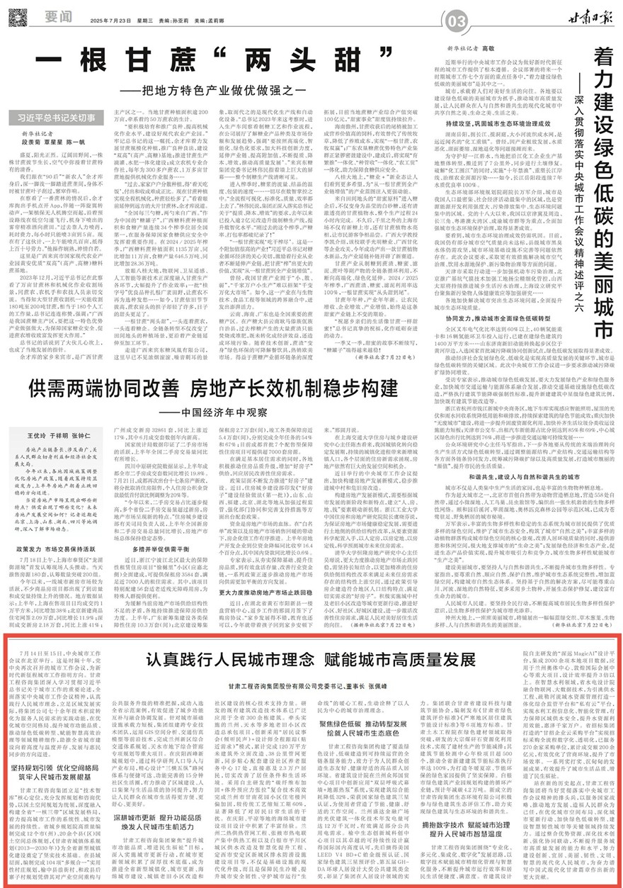 7月14日至15日,中央城市工作會議在北京舉行。這是時(shí)隔十年,黨中央再次召開的城市工作會議,為新時(shí)代新征程城市工作指明方向。甘肅工程咨詢集團(tuán)深入學(xué)習(xí)貫徹習(xí)近平總書記關(guān)于城市工作的重要論述,全面落實(shí)中央城市工作會議精神,認(rèn)真踐行人民城市理念,立足區(qū)域發(fā)展實(shí)際,將集團(tuán)公司七十余年技術(shù)積淀轉(zhuǎn)化為服務(wù)人民需求的實(shí)踐動(dòng)能,在優(yōu)化城市空間格局、提升城市功能品質(zhì)、推動(dòng)綠色低碳轉(zhuǎn)型、賦能智慧高效治理等領(lǐng)域精耕細(xì)作,助推全省城市建設(shè)向著高度與溫度并存、發(fā)展與惠民同步的方向邁進(jìn)。