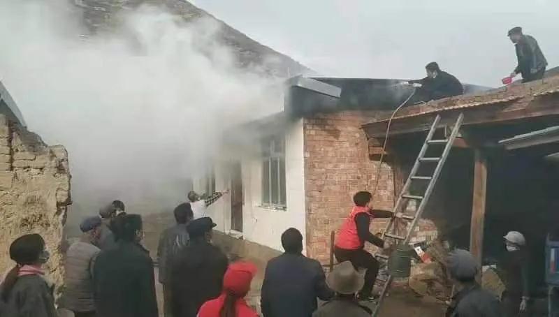 10月30日下午3點,交通監(jiān)理公司負責幫扶的臨潭縣洮濱鎮(zhèn)馬旦溝村一戶村民家中突然冒出滾滾濃煙,火光在濃煙中忽隱忽現(xiàn)。著火是一座磚木結(jié)構(gòu)彩鋼屋頂?shù)男路浚饛奈蓓敓?,越燒越旺。著火的房屋旁邊堆放著多年的老柴火,干燥異常,一絲火星就能點燃,而與著火點緊鄰著的就是布局緊密的鄉(xiāng)親們的房屋,再往外圍則緊接著山林,如果火勢蔓延,后果將不堪設想。