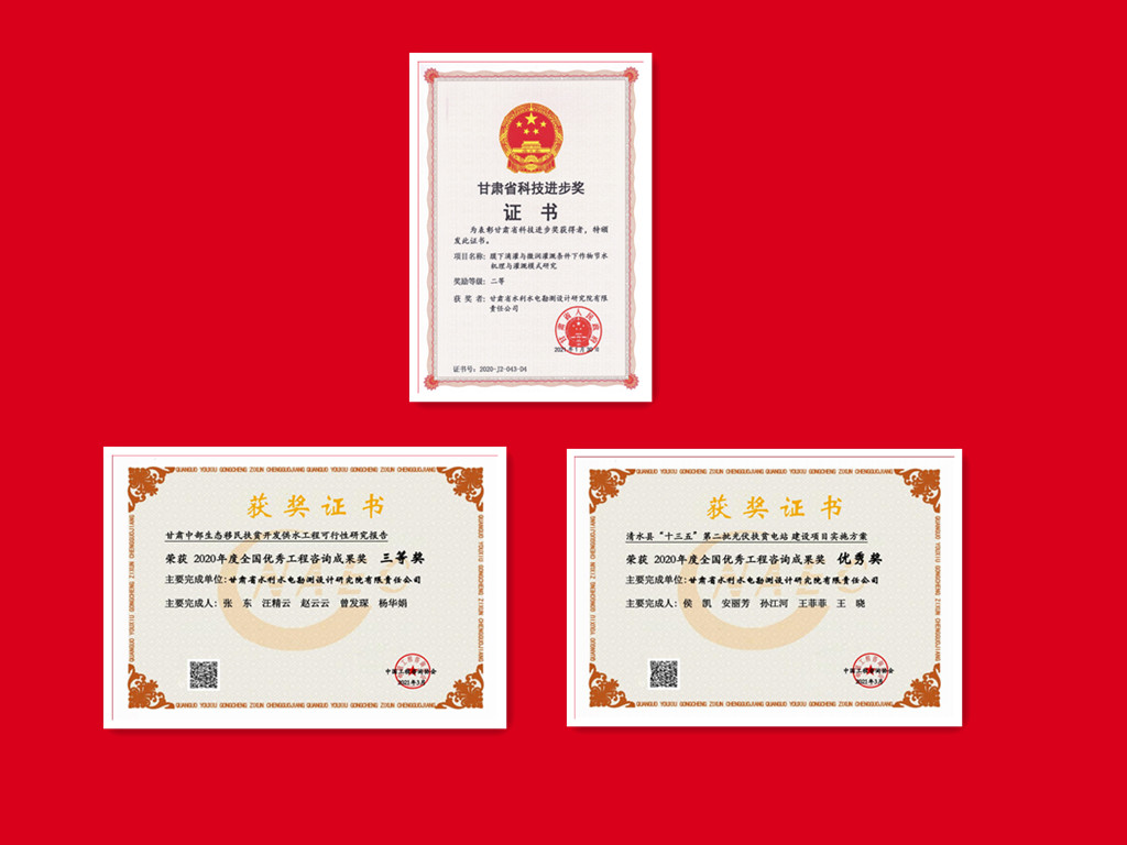 科研成果在工程實(shí)踐中開花結(jié)果,多個(gè)項(xiàng)目獲技術(shù)表彰獎(jiǎng)勵(lì):《民勤縣紅崖山水庫加高擴(kuò)建工程》獲甘肅省優(yōu)秀工程勘察設(shè)計(jì)一等獎(jiǎng);《石羊河流域重點(diǎn)治理項(xiàng)目西營(yíng)河專用輸水渠工程》《古浪縣生態(tài)移民暨扶貧開發(fā)黃花灘項(xiàng)目水利骨干工程》《大通河納子峽水電站工程地質(zhì)勘察》《昌馬水庫樞紐工程地質(zhì)勘察》分別獲甘肅省優(yōu)秀工程勘察設(shè)計(jì)二等獎(jiǎng);《甘肅中部生態(tài)移民扶貧開發(fā)供水工程可行性研究報(bào)告》獲全國(guó)優(yōu)秀工程咨詢成果獎(jiǎng)三等獎(jiǎng);《清水縣“十三五”第二批光伏扶貧電站項(xiàng)目》獲全國(guó)優(yōu)秀工程咨詢成果獎(jiǎng)優(yōu)秀獎(jiǎng)。