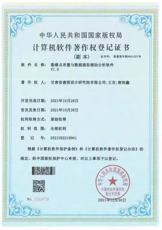 近日,從國(guó)家版權(quán)局傳來(lái)好消息,根據(jù)《計(jì)算機(jī)軟件保護(hù)條例》《計(jì)算機(jī)軟件著作權(quán)登記辦法》規(guī)定,甘肅省建筑設(shè)計(jì)研究院有限公司工程勘察院研發(fā)的“勘察點(diǎn)布置與數(shù)據(jù)提取輔助分析軟件”,經(jīng)專(zhuān)家審核,授予計(jì)算機(jī)軟件著作權(quán)登記證書(shū)。