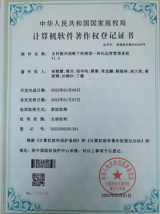 近日,從國家版權(quán)局傳來好消息,甘肅省建筑設(shè)計研究院有限公司自主研發(fā)的“鄉(xiāng)村振興戰(zhàn)略下的規(guī)劃一體化運營管理系統(tǒng)V1.0”,獲得國家版權(quán)局頒發(fā)的計算機軟件著作權(quán)登記證書。