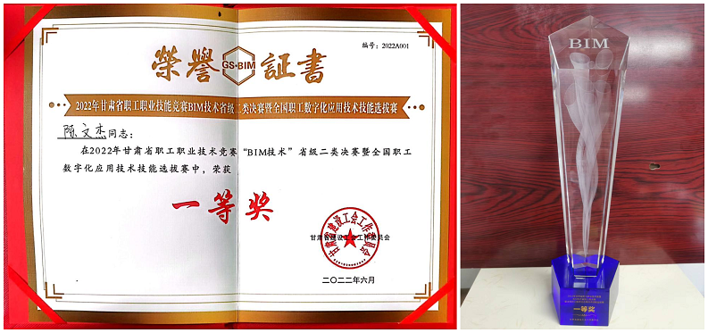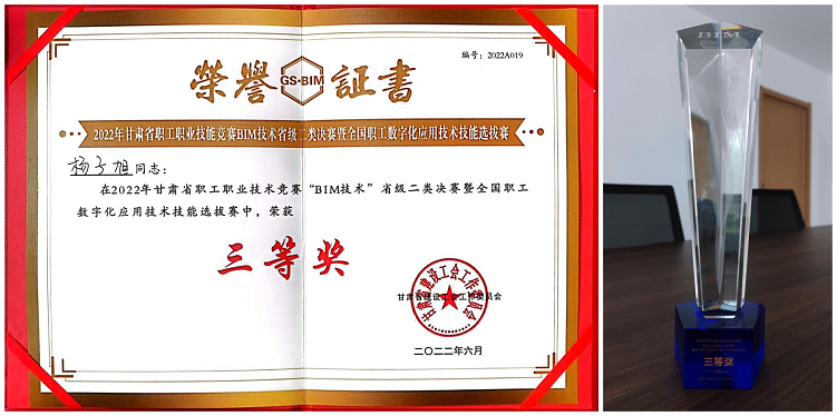 近日,在甘肅省職工職業(yè)技能競(jìng)賽“BIM 技術(shù)”省級(jí)二類(lèi)決賽暨全國(guó)職工數(shù)字化應(yīng)用技術(shù)技能選拔賽中,甘肅省建筑設(shè)計(jì)研究院有限公司榮獲優(yōu)秀組織獎(jiǎng),選送的參賽選手陳文杰和楊子旭分別榮獲一、三等獎(jiǎng)。