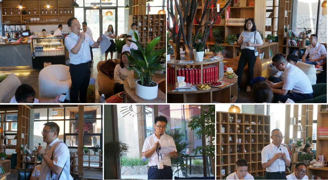 在棲云小鎮(zhèn)書吧開展的“一心永向黨,喜迎二十大”的交流研討會(huì)上,羅堯同志代表第五黨支部作主題發(fā)言。他首先對(duì)參加本次主題黨日活動(dòng)的同志們表示歡迎和感謝,然后為大家深入講解并解讀了我省第十四次黨代會(huì)提出的“一核三帶”省域發(fā)展新藍(lán)圖和“四強(qiáng)”行動(dòng)相關(guān)要點(diǎn),并倡議每一位規(guī)劃工作從業(yè)者應(yīng)當(dāng)加強(qiáng)政治學(xué)習(xí),提高政治站位,在全面把握全省重大政治任務(wù)的前提下,與時(shí)俱進(jìn),緊密聯(lián)系實(shí)際開展規(guī)劃設(shè)計(jì)工作,并著眼長(zhǎng)遠(yuǎn)、聚焦重點(diǎn),充分發(fā)揮技術(shù)優(yōu)勢(shì),助力全面推進(jìn)甘肅經(jīng)濟(jì)社會(huì)高質(zhì)量發(fā)展。黨委辦公室主任樊曉丹同志作了“高度重視黨建工作,推動(dòng)黨建工作和業(yè)務(wù)工作深度融合”的主題發(fā)言。她首先肯定了第五黨支部一直以來在黨建工作中取得的成績(jī),并鼓勵(lì)支部應(yīng)當(dāng)百尺竿頭更進(jìn)一步,積極打造黨建品牌,不斷提升基層黨建工作的引領(lǐng)力、號(hào)召力和吸引力。團(tuán)委書記劉斌同志以《回顧百年團(tuán)史,匯聚青春力量》為題,講授了一堂生動(dòng)的黨課,帶領(lǐng)大家一起走進(jìn)百年團(tuán)史,追尋信仰之光,勇?lián)啻菏姑?,倡議廣大團(tuán)員應(yīng)當(dāng)緊跟黨走,擔(dān)時(shí)代之責(zé),做新征程的奮進(jìn)者、開拓者和奉獻(xiàn)者,傳遞青春力量,綻放青春芳華,用青春和熱血書寫新時(shí)代壯麗篇章。其他黨員及入黨積極分子也從自身學(xué)習(xí)和工作實(shí)際出發(fā),分別就基層黨建、政治理論學(xué)習(xí)、黨員先鋒模范作用發(fā)揮等方面交流了各自的所思所感。