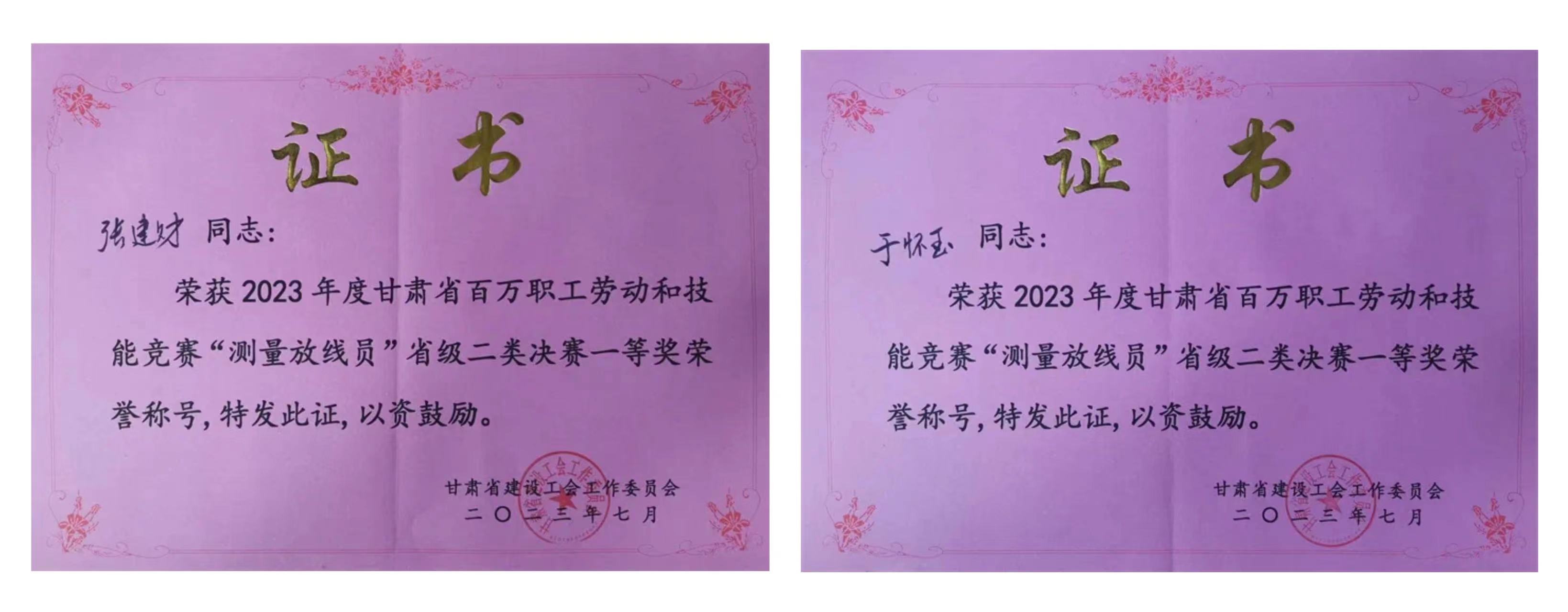 近日,從省建設(shè)工會(huì)“2023年度甘肅省百萬職工勞動(dòng)和技能競賽”組委會(huì)傳來好消息,省建筑設(shè)計(jì)院選派的巖土技術(shù)中心、巖土工程公司張建財(cái)和于懷玉兩名同志,榮獲2023年度甘肅省百萬職工勞動(dòng)和技能競賽“測(cè)量放線員”省級(jí)二類決賽一等獎(jiǎng)榮譽(yù)稱號(hào)。