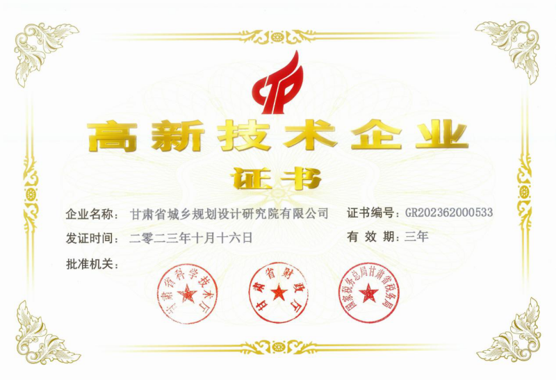 近日,經過嚴格的審批程序,省規(guī)劃設計院申報的國家高新技術企業(yè)最終通過認定并獲得由省科學技術廳、省財政廳和國家稅務總局甘肅省稅務局聯(lián)合頒發(fā)的“高新技術企業(yè)證書”(證書編號:GR202362000533)。