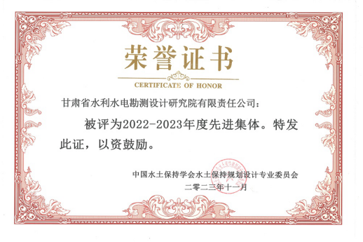 11月5日至7日,中國水土保持學(xué)會2023年年會暨學(xué)術(shù)研討會在蘭州召開。省水電設(shè)計(jì)院榮獲中國水土保持學(xué)會2022-2023年度“先進(jìn)集體”稱號,水保設(shè)計(jì)咨詢公司王向明榮獲“先進(jìn)個人”稱號。1篇論文獲優(yōu)秀論文獎。